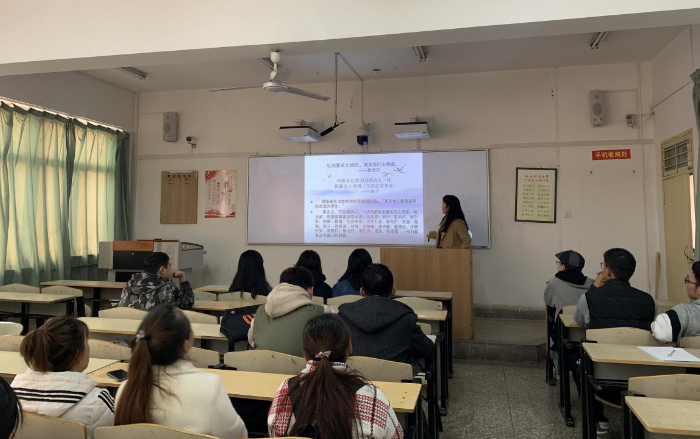 11月22日下午,我院法学系在骊山校园2号教学楼402室举办了主题为“一路前行,一路芬芳”的阅读书目推荐会。推荐会由法学1901班班主任舒真主持,法学1901班全体同学参加了推荐会。
