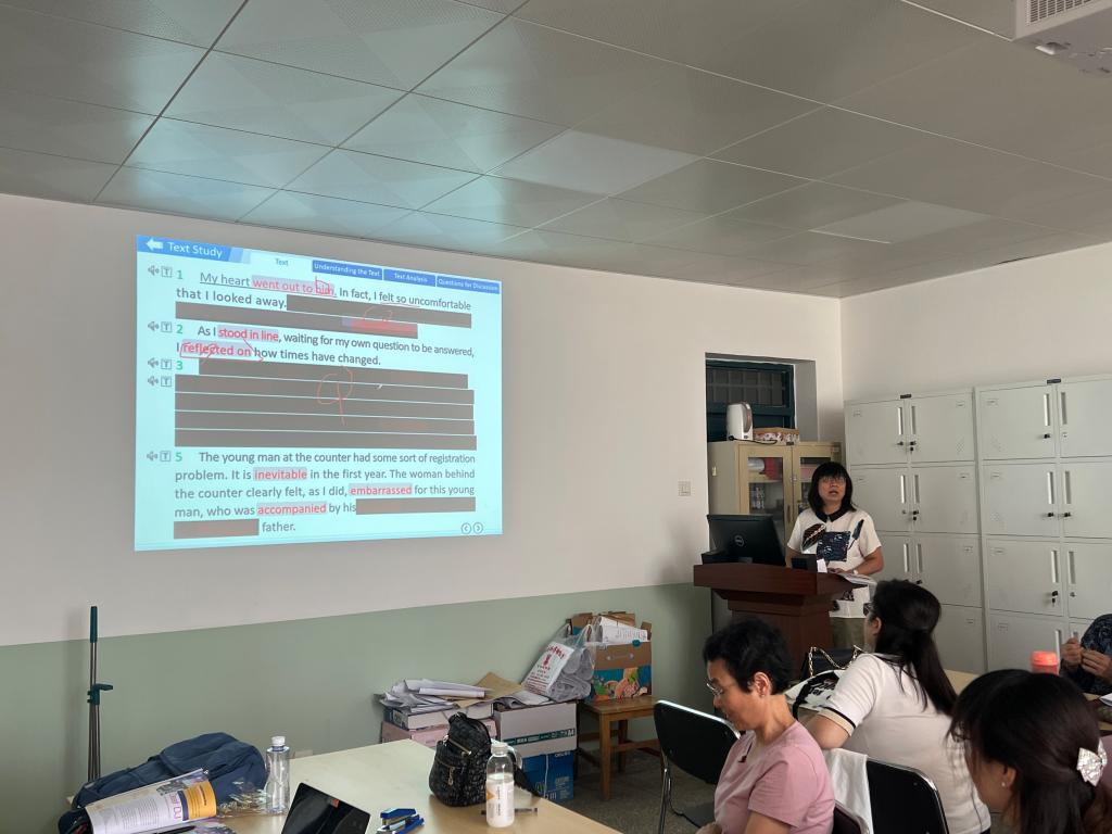 首先,党婉青向教师们传达了学校和学院对大学英语教学方面的意见和建议,然后由张彩虹、吉科利、张笑翀和王宁等几位老师进行大学进阶英语第一册Unit1和Unit2的示范教学。四位老师分别进行了5分钟说课和20分钟讲课,通过PPT演示、短视频展示和讲解,进行学情分析、课文导入、教学设计以及作业和反思的示范教学,并结合自身工作,尤其在如何提高大学英语教学质量方面找原因、做总结。随后,参会老师们就教学设计方面展开了热烈讨论,认为广大教师要善于挖掘教材中的思政点,并适时融入日常的课堂教学,在潜移默化中培养学生的理想信念和家国情怀,做到“润物细无声”。同时,还应结合陕西文化大省的背景,注重增强学生对陕西文化、中国文化的深入了解,在帮助学生树立文化自信的同时,也有利于中国文化的对外传播和发展,切实做好“用英语讲好中国故事”。