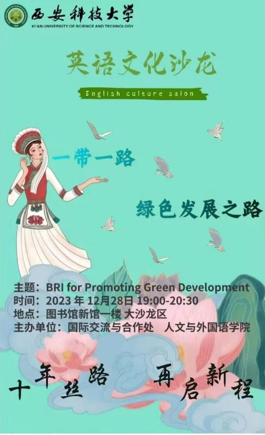 为贯彻落实习近平总书记提出的“一带一路”倡议的内涵,丰富学生校园文化生活,12月28日晚,在临潼校区骊山校园图书馆新馆一楼大沙龙区,beat365官方网站与国际交流与合作处联合举办“十年丝路,再启新程”系列英语文化沙龙活动。此次活动的主题为“一带一路——绿色发展之路”。