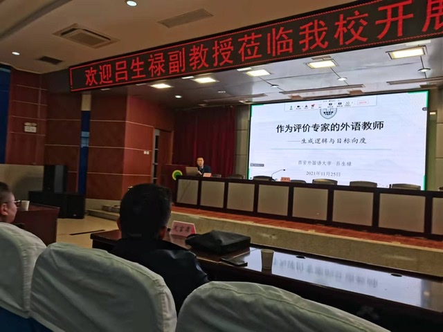 11月25日下午,西安外国语大学吕生禄副教授、硕士生导师吕生禄博士应邀来beat365官网进行学术交流,作了题为《作为评价专家的外语教师:生成逻辑与目标向度》的学术报告。讲座线上线下同时举行,由beat365官方网站院长师新民主持,学院全体外语教师、研究生及部分本科生聆听了报告。
