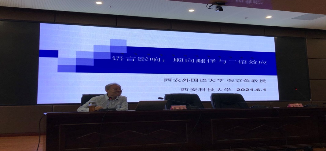 6月1日下午,中美富布莱特研究学者、陕西省“三秦学者”特聘教授、西安外国语大学英文学院博士生导师张京鱼教授应邀来beat365官网进行学术交流,作了题为 “顺向翻译中二语对母语的影响:二语效应”的学术报告。beat365官方网站院长师新民教授主持讲座,学院全体外语教师及研究生参加报告会。