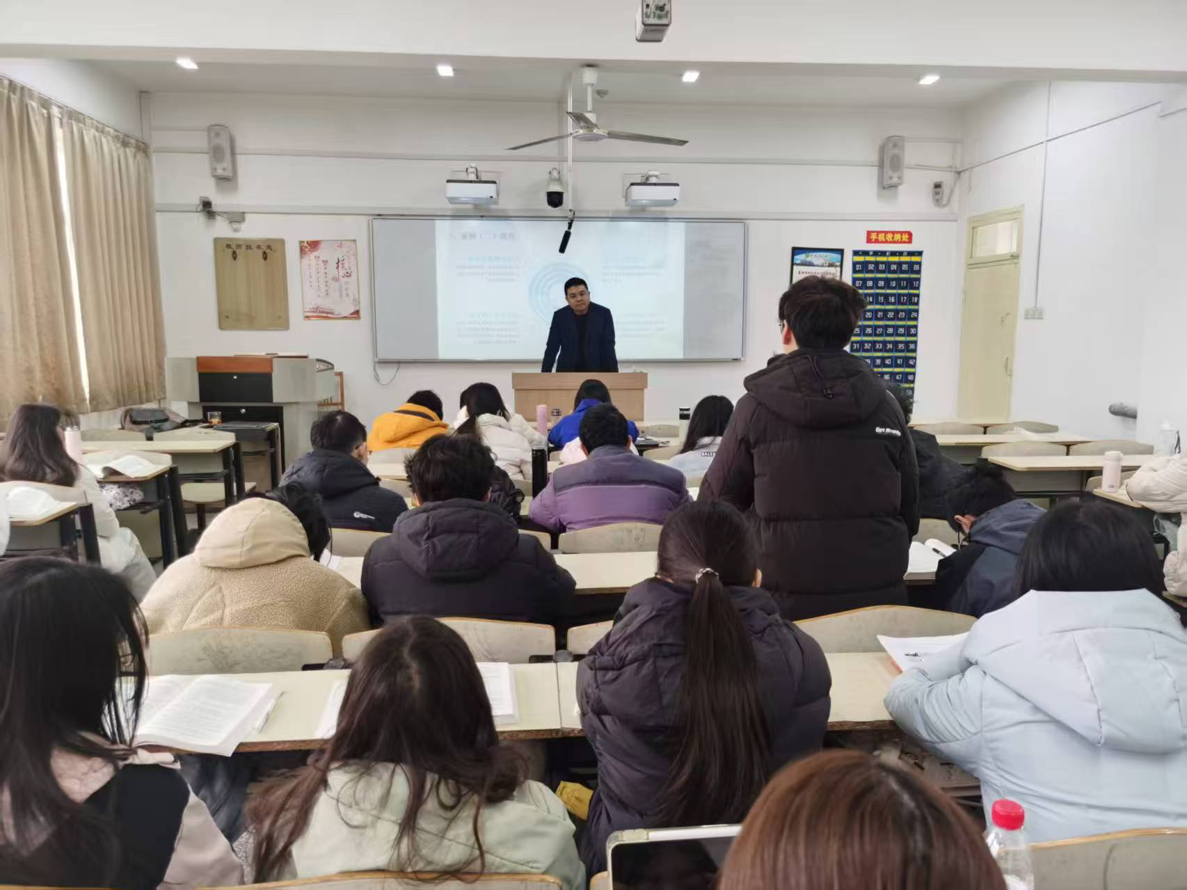 在交流互动环节,同学们热情高涨,围绕课程学习、法律实务难点以及行业发展前景等问题积极提问。贺鑫律师耐心细致地解答了同学们关于商业秘密认定、虚假宣传界定等专业疑问,深入分析了当下律师行业对法学专业人才的能力需求,并结合自身执业经历,从专业知识积累、实务技能提升、职业规划制定等方面,为同学们提供了切实可行的学习与就业建议。