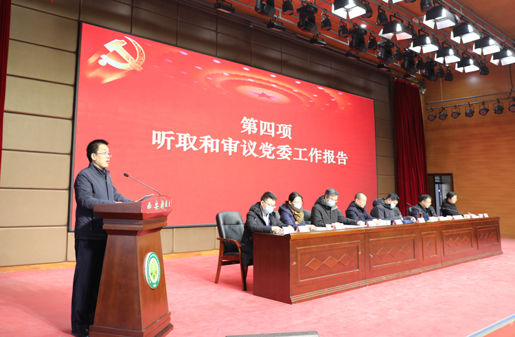 大会在庄严的中华人民共和国国歌声中拉开帷幕。会上,学院党委书记费秀水通报了本次换届选举工作的筹备情况,并代表本届党委作工作报告。学院党委副书记、院长师新民宣读了校党委《关于中共beat365官方网站委员会换届选举候选人预备人选的批复》。学院党委委员邓晓菲作本届党委党费收缴管理和党建工作经费使用情况报告。学院党委委员、副院长冯正斌简要介绍了 “两委会”委员候选人情况。