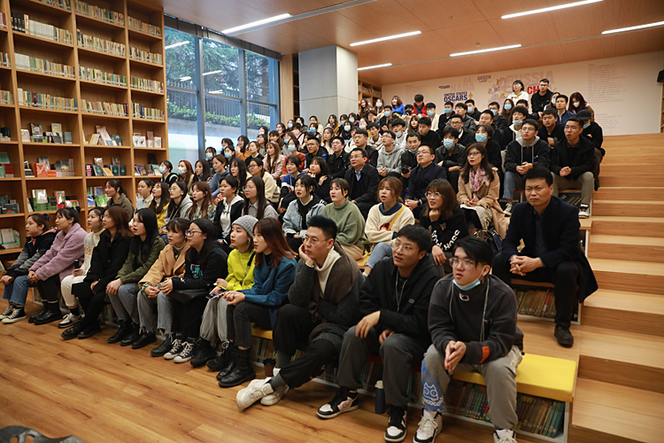 活动中,师生们参观了西影星光大道、厂史馆、“电影海报中的一带一路”主题海报展、电影制作技术科普体验区、放映机收藏博物馆、影屋等地,深入了解了西影建厂60多年来的发展脉络及西影人的创业艰辛与匠心成就,也从电影工业的发展变迁和技术迭代中,深切感受到新中国成立七十多年来的历史巨变尤其是改革开放四十年来焕发出的蓬勃生机以及在经济、科技、文化、社会等领域取得的辉煌成就。师生们还聆听了西影集团刘婧老师主讲的一堂音乐与党性教育相融合的“音乐党课”,汲取精神力量,追溯初心使命。刘婧以史串歌,借歌弘史,通过《山丹丹开花红艳艳》、《保卫黄河》、《南泥湾》等延安时期的经典红色音乐作品,阐释了陕北民歌在中国革命发展历程中发挥的重要作用。在熟悉的旋律中,全场人员一同高唱,激情高扬,在歌声中触摸信仰的力量,感受真理的光芒,体验了“音乐党课”的独特魅力。