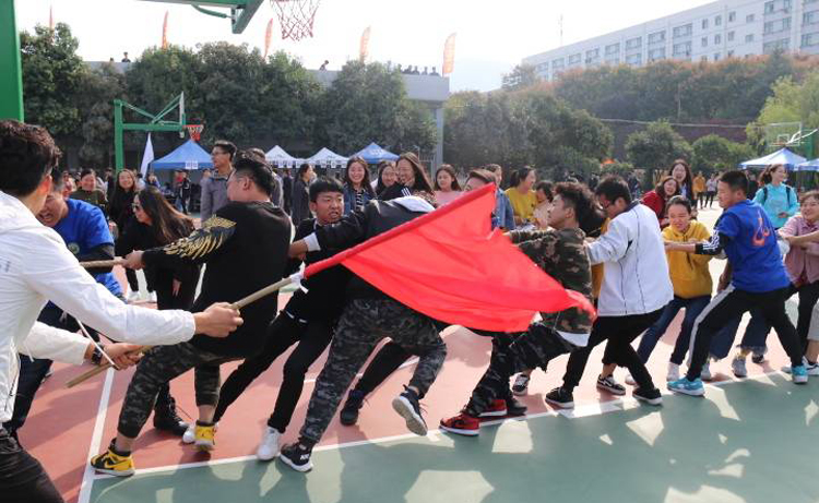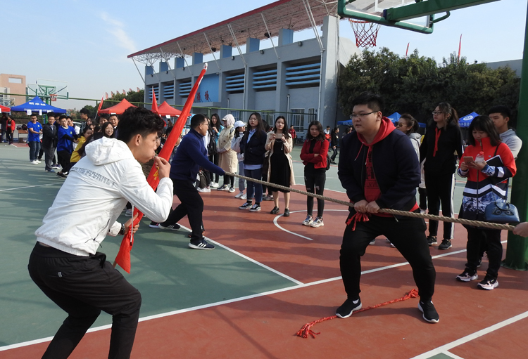 10月11日,beat365官方网站在临潼校区西篮球场举行了师生趣味拔河比赛。学院领导班子成员、各系部教职工以及学生代表60余人参加了比赛。
