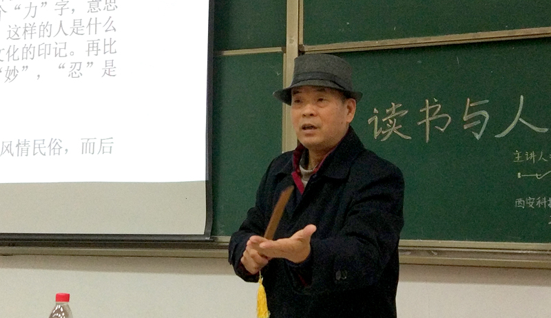 在报告中,孙见喜结合自己多年读书的体会与感受,采取讲故事、唱民歌、朗诵诗作等方式,为大家生动解读了读书的目的、方法、趣味、教益以及读书与民族精神的生成等问题,并以儒家文化结构图和中华道德发展延续图为例,提出读圣贤书是为中国伦理道德补课的观点,希望大家能够多读书、读好书、善读书,通过读书提高修养,培养独立思想和独立人格,积极为传承弘扬中华优秀传统文化、塑造以“良心(道德的自觉意识)”为基础的民族魂而尽一份力量。报告内容丰富详实,语言生动幽默,情感充沛热烈,说理深邃透彻,受到与会师生的热烈欢迎。