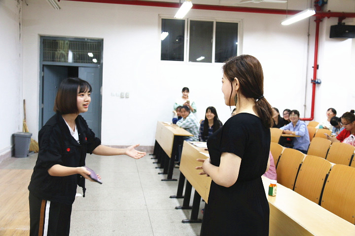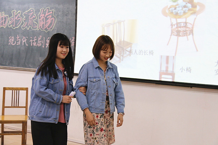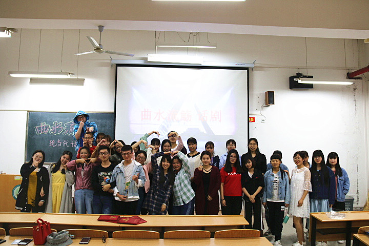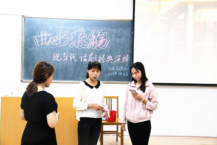 5月8日晚,beat365官方网站 “曲水流觞之经典演绎”系列活动——现当代话剧专场在临潼校区骊山校园9-104室举行。汉语言文学专业教师郭萌、续娟娟应邀担任评委,汉语言文学1601班全体学生分成四组进行了展演。