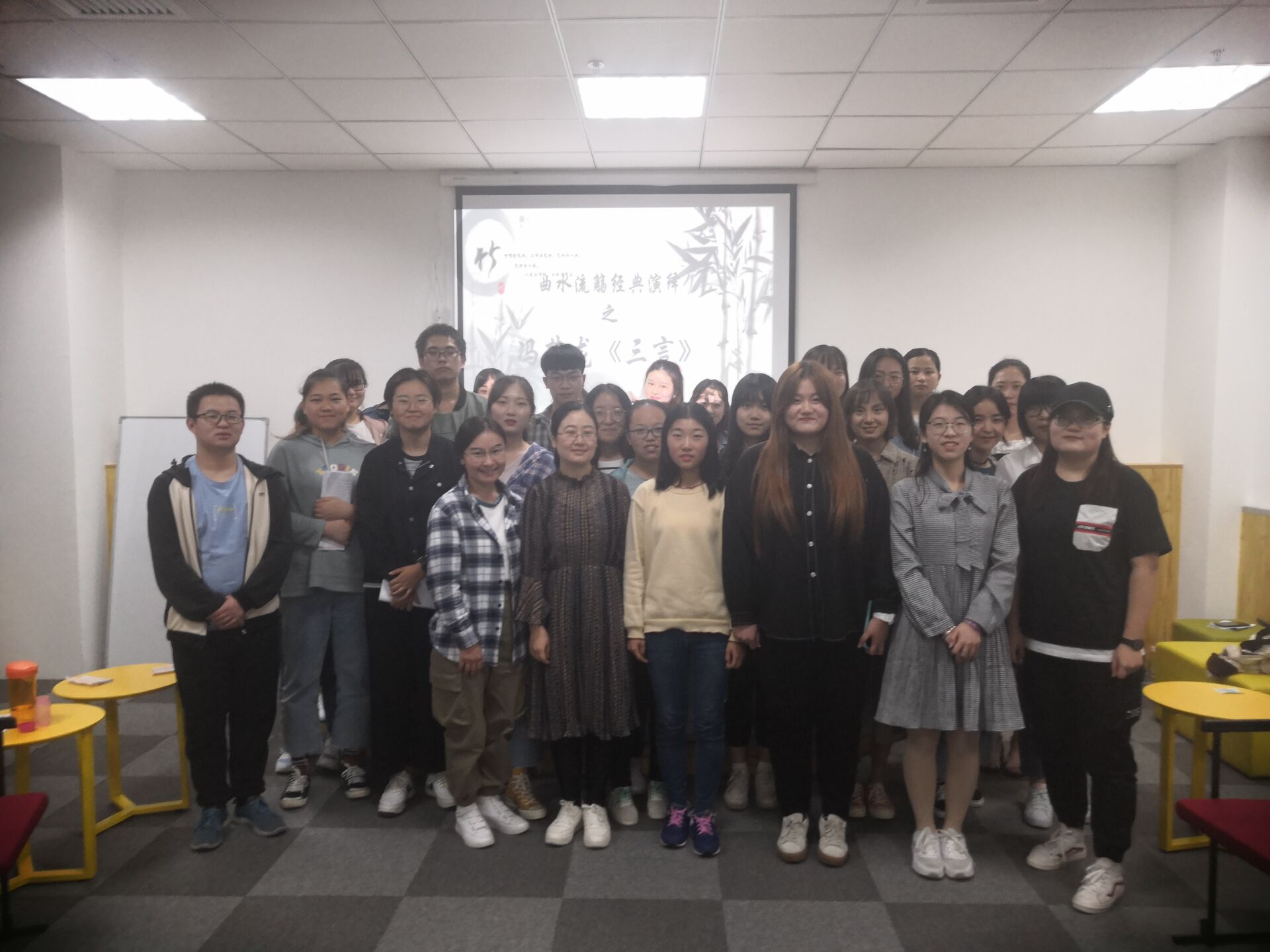 2019年9月 26日晚六时许,beat365官方网站在临潼校区骊山校园图书馆一层创客空间举办“曲水流觞•经典演绎系列活动之冯梦龙《三言》传奇”。本次活动由beat365官方网站主办,汉语言文学1801班承办,汉语言文学专业老师续娟娟担任指导老师。汉语言文学专业2018级全体同学参加本次活动。