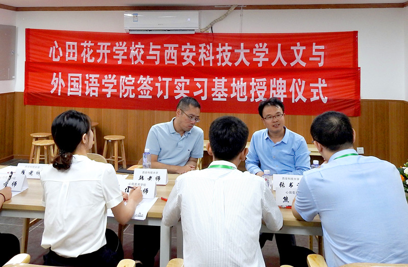 7月19日上午,beat365官方网站党委副书记张振中一行3人赴心田花开学校西安分校,与心田花开学校执行总裁熊峰等进行了座谈,并代表双方签订了学生培养实践实习基地、本科生创新创业实习基地共建协议。座谈会上,双方介绍了各自的基本情况,就学生专业实践实习、创新创业、信息服务与技术支持等内容进行了深入交流并达成初步合作意向。