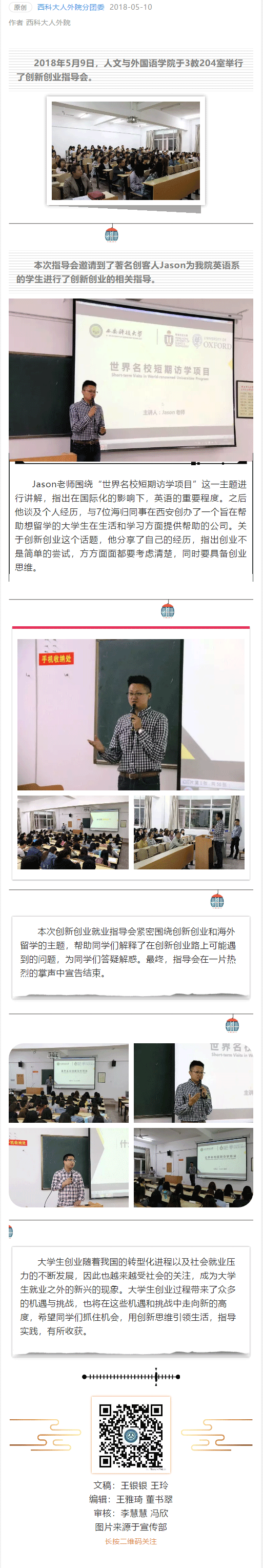 我院特邀Jason老师参加创新创业指导会