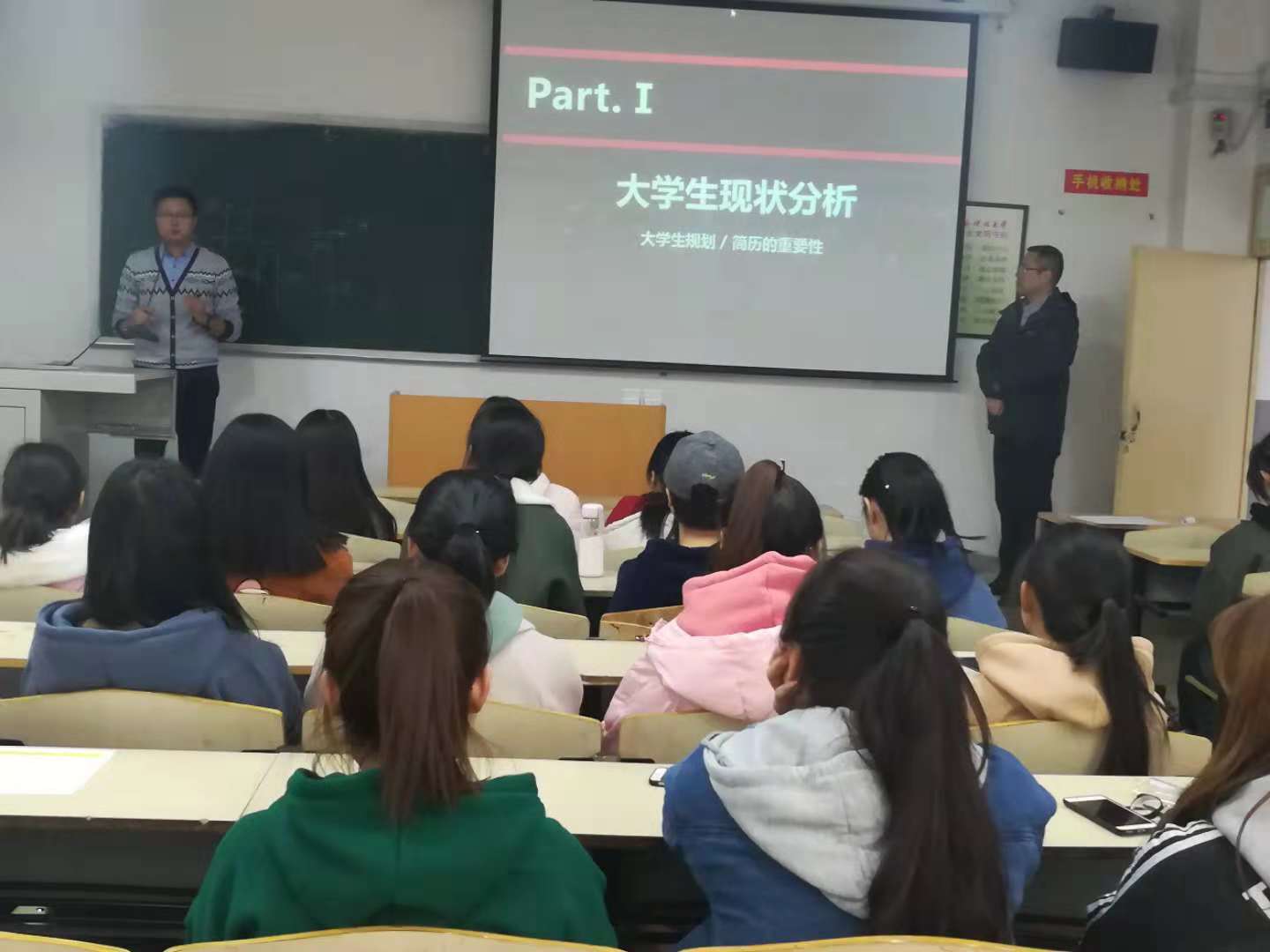 11月22日下午,beat365官方网站创新创业与学科竞赛教研室邀请BBA(hons) IFPHK之理财策划师、九鼎富通人力招聘总监、环球名企培训中心培训发展总监、香港工商联金融发展委员会委员罗琪先生在临潼校区二教103教室做了主题为《世界500强企业人才培养计划》的专题讲座。讲座由韩帅老师主持,人外学院2016级与2017级共计80余名学生聆听了讲座。