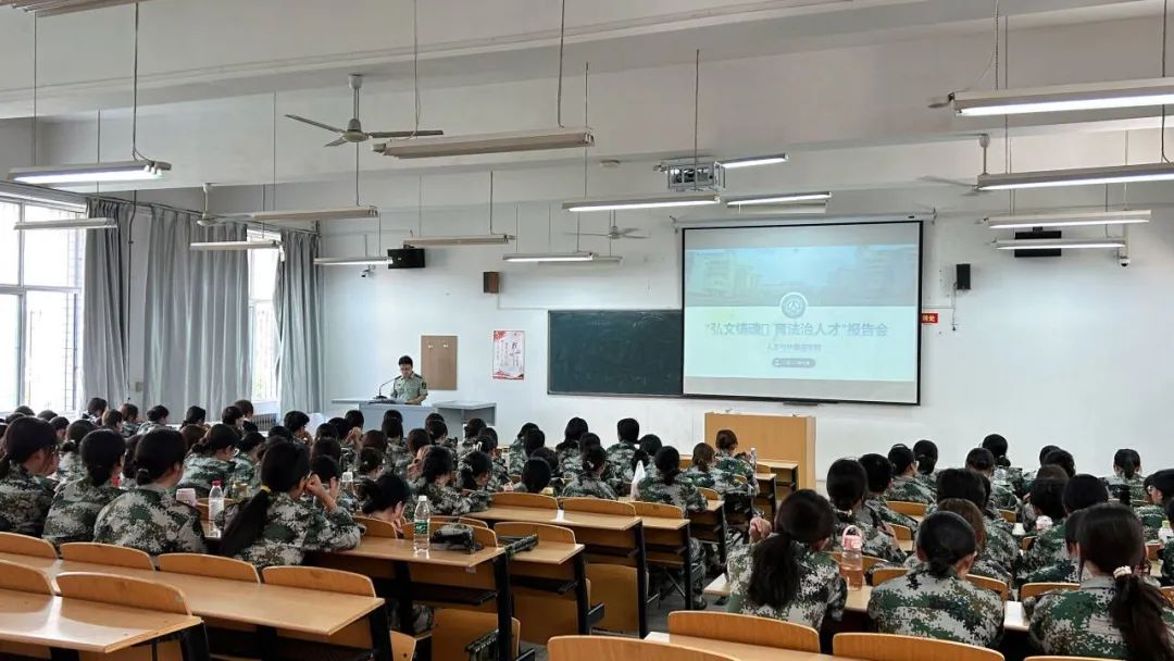 为深入学习贯彻宣传习近平法治思想,坚定学生理想信念,提高政治站位和法治素养,加深专业认知,营造和谐法治校园环境,9月13日上午beat365官方网站组织23级新生参加“弘文铸魂•育法治人才”专题讲座,十四营指导员李银亮主持。