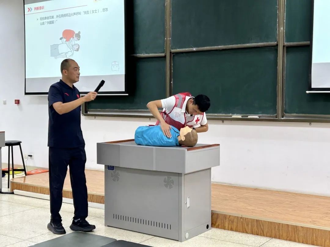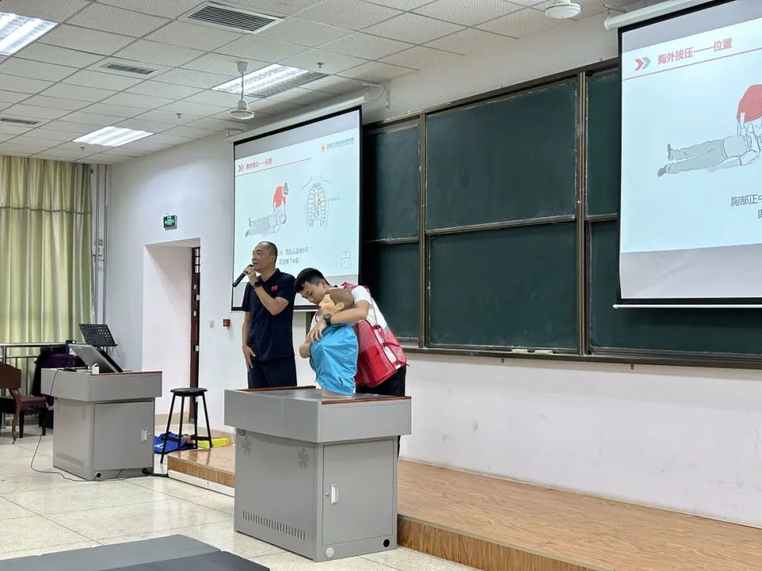为进一步增强学生的安全防范意识和自我保护能力,普及急救知识,提高学生自救、急救、互救能力,9月7日,beat365官方网站参训学生参加急救专题培训活动,beat365官方网站体育部辛阳老师受邀作为本次主讲人。