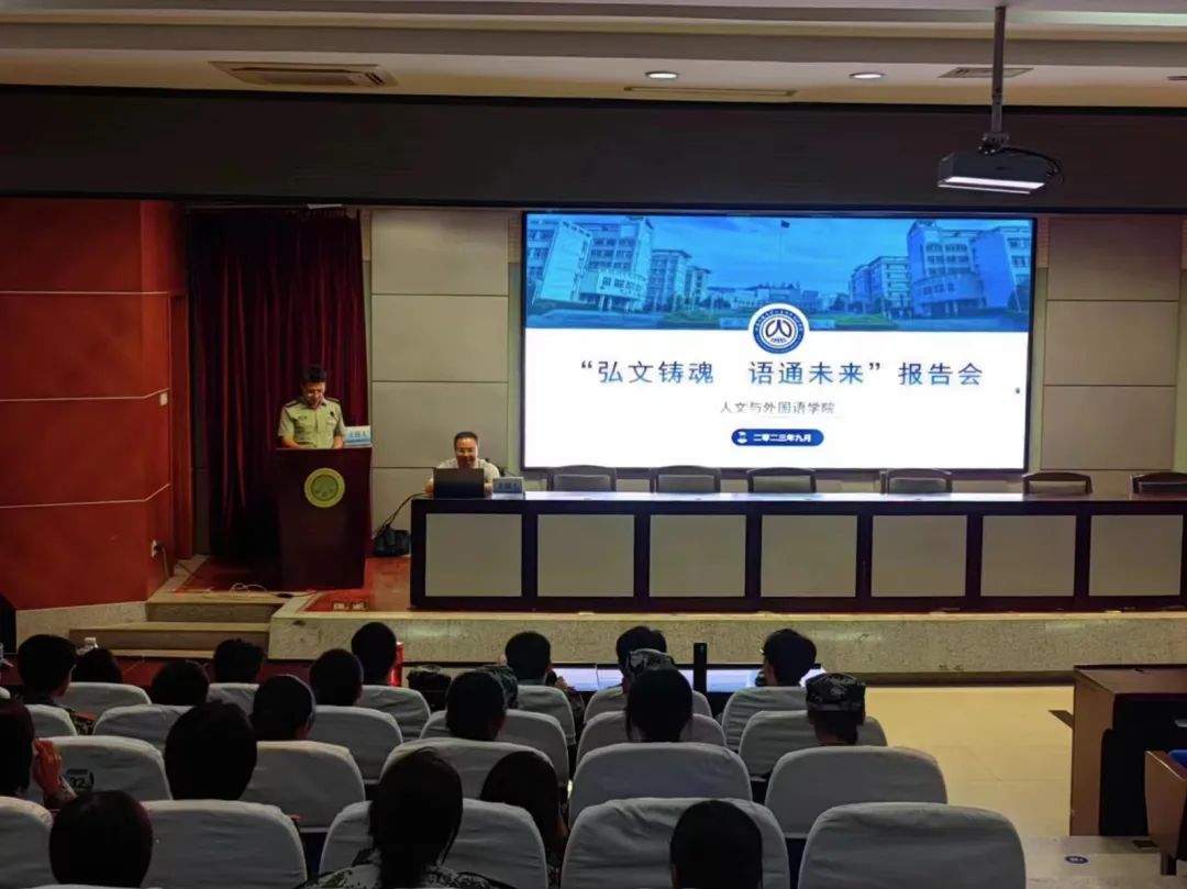 为进一步落实习近平总书记关于教育的重要论述和关于语言文化的重要指示精神,加深学生对英语学科的认知,提升专业素养,明确未来发展方向,9月11日下午beat365官方网站组织23级新生参加“弘文铸魂•语通未来”专题讲座,十四营指导员李银亮主持。