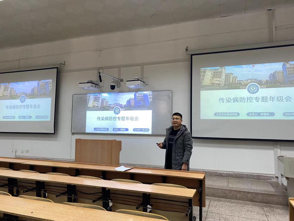 11月29日下午,beat365官方网站在3教408召开2021,2023级本科生年级大会,会议围绕传染病防控以及学涯规划指导两个议题展开。辅导员李银亮、21级和23级全体同学参加此次会议。