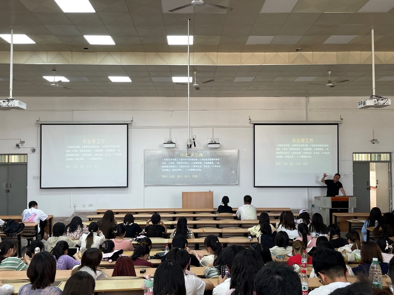 会议强调了意识形态安全、宿舍安全、防范电信诈骗、个人人身财产安全、校园内交通安全等,要求全体毕业班学生要提升纪律意识,严格请销假制度,杜绝夜不归宿等现象。