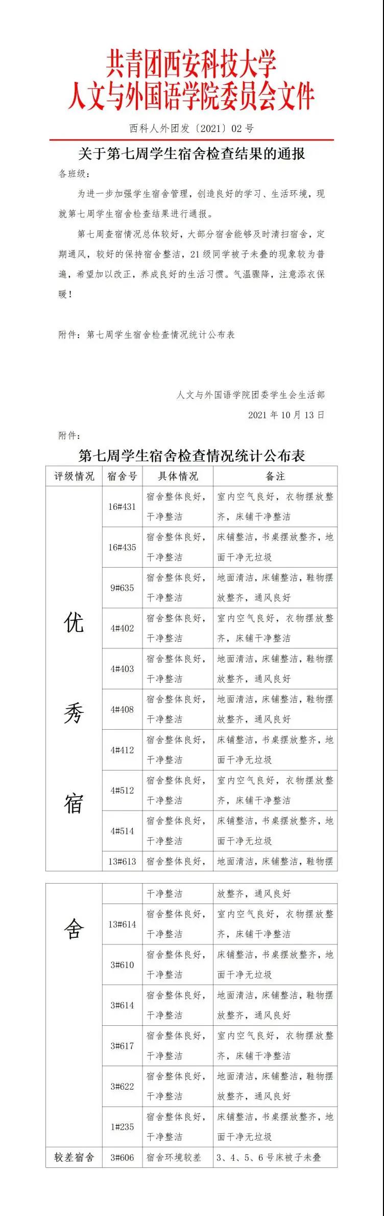 本次宿舍卫生检查汇总如下: