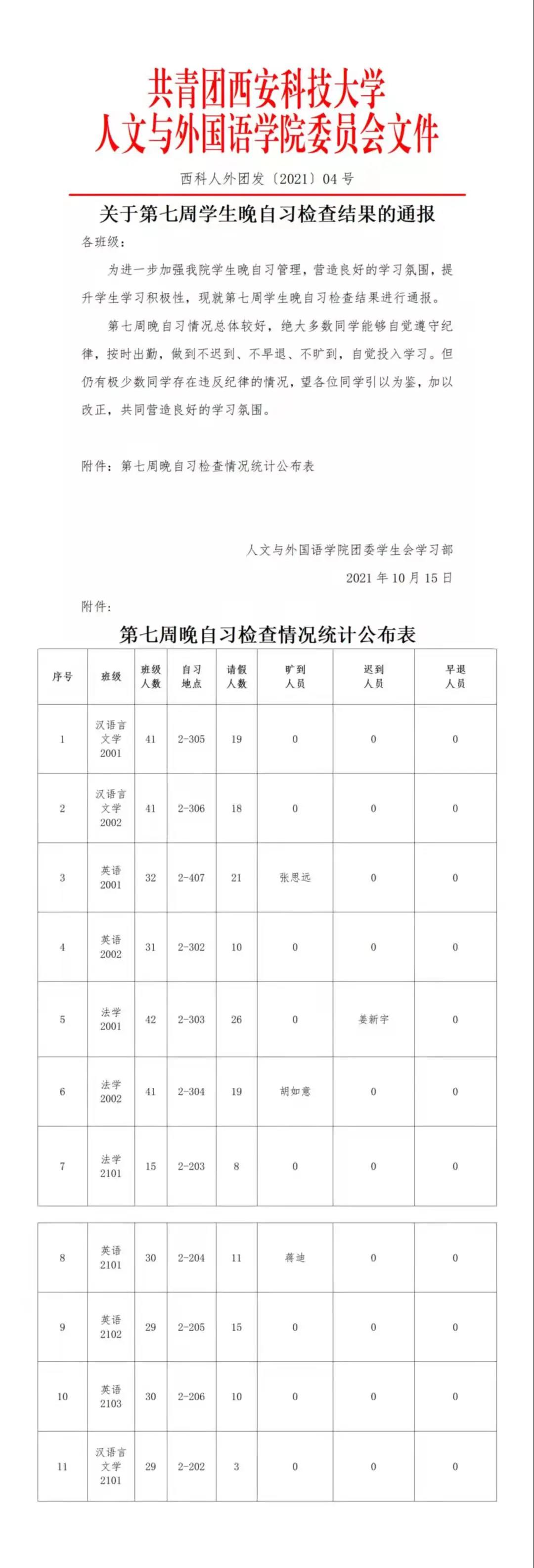 晚自习情况汇总