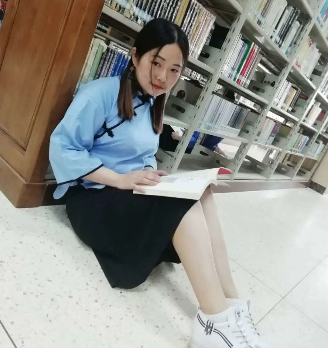 毕业前,许鸽在图书馆的留影