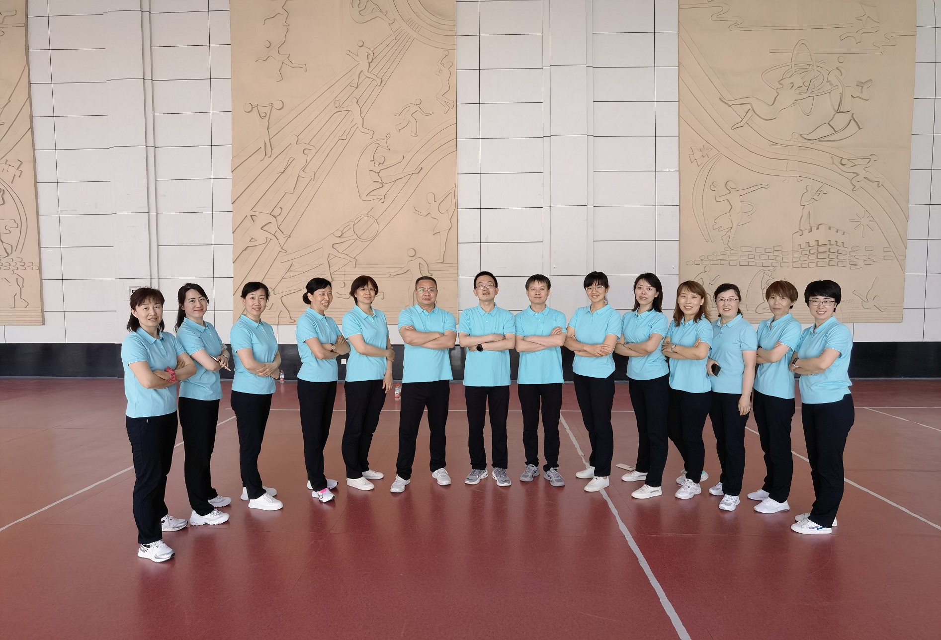 健康有我”教职工广播操和健身操比赛。来自17个分工会300余名教职工参加了比赛。我院党委书记费秀水、分工会主席邹虹、张燕清、高宝萍等14名教师参加了第九套广播操和健身操的比赛。