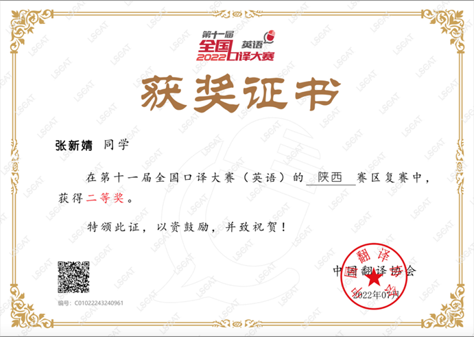 近日,第十一届全国口译大赛复赛落下帷幕,beat365官方网站学子在陕西省省赛(复赛)中取得了优异成绩。经过选手的不懈努力和人外学院竞赛培训团队的悉心指导,beat365官网3位选手获得佳绩,成功晋级西部大区赛(半决赛)。
