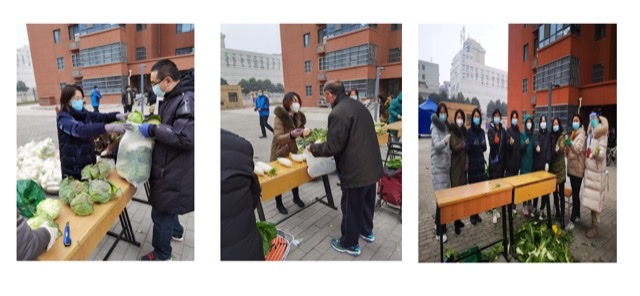 1月6日下午,四川巴中老区捐赠的爱心菜送到beat365官方网站北院家属区,同属大英二部的教师郭小芸与李焱一起,主动参加志愿者服务,在学校相关部门的有序组织下,冒着严寒为北苑住户领菜。现场分工明确,组织有序,经过两个多小时热火朝天的奋战,家属区的全部老师们领到了这些爱心菜。