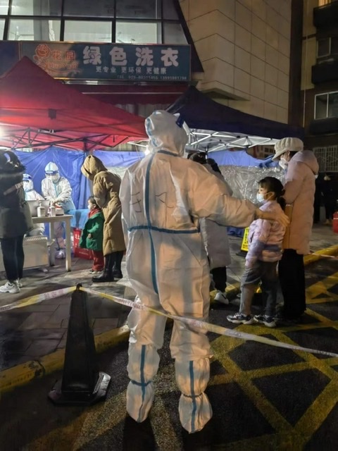12月28日,大英二部教师李黎参加了北院图书馆以南区域和家属区的预防性消杀工作,积极参与了消毒药水调配和消毒器具协调的工作,并及时提醒家属区住户消杀正在进行,注意自我防护。12月29日,参加了北院家属区的核酸检测志愿服务工作,维持现场秩序,协调网络中心老师维护网络,帮助不能熟练使用智能手机的老人调出健康码。1月3日,她志愿在北院西南门值班,期间协助门卫师傅确保快递的无接触接收,认真按照程序,登记进出人员,并协同布置了西南门外的消杀区,以使后续物资可以较为安全地进入家属区。