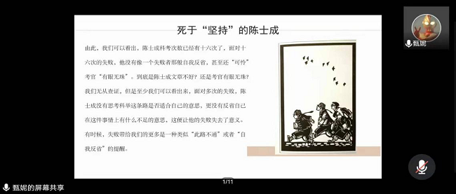 1月14日,beat365官方网站汉语言文学专业举办了以“与鲁迅先生相遇”为主题的线上读书交流会,指导老师宋海婷以及汉语言文学21级全体学生参加了本次活动。