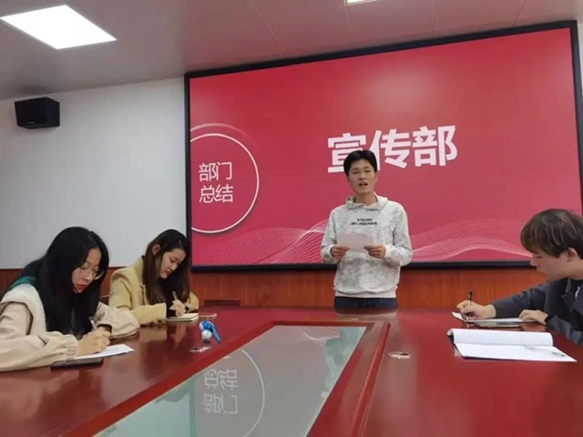 宣传部党宇航:宣传部开展了包括换届大会ppt制作、拍照,教师节、中秋节海报设计、制作,学院官方抖音,学院官方网站整合优化,实现官网官微同步更新等工作。接下来出于工作需要我们将采取定向培养的方式,分系教学,同时提升部分学有余力的干事的能力。