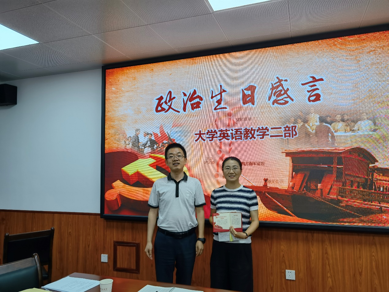 6月17日上午,我院大英二部党支部为全体党员举办了一场意义非凡的集体生日会---政治生日会,暨“永远跟党走”主题党日活动。活动由支部书记李焱主持,除个别有教学任务党员外,支部其余党员均参加了此次活动,院党委书记费秀水受邀出席本次活动。