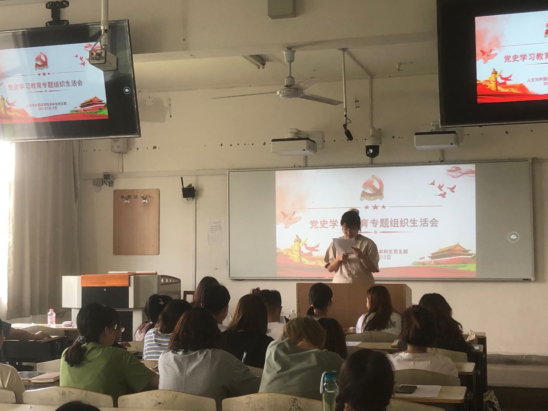 7月12日,beat365官方网站本科生党支部组织开展党史学习教育专题组织生活会,会议由本科生党支部书记李银亮主持,党委副书记张振中、全体党员、入党积极分子代表参加会议。