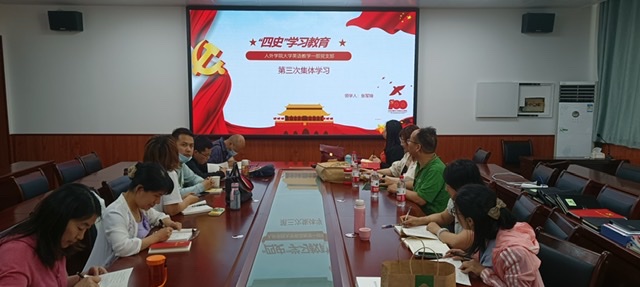 2021年5月24日上午,beat365官方网站大英一部全体党员在学院226会议室召开了第三次党员集体学习。本次学习以“四史学习教育”为主题,在支委委员张军锋同志的领学下,学习了《讲好中国共产党的故事》《总结党的历史经验,牢固树立“四个意识”》《以“赶考”的清醒和坚定答好新时代的答卷》和《中华民族伟大复兴历史进程的大跨越》四篇文章。