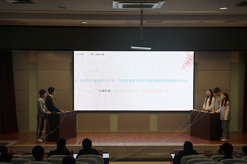 4月23日晚19点,beat365官方网站第七届诗词大会决赛在骊山校区图书馆报告厅举行,校党委副书记樊建武出席并为获奖选手颁奖。西安交通大学中文系讲师、南开大学文学博士、河北卫视第四季《中华好诗词》总决赛四强选手李明,曾获中华好诗词大赛陕西赛区的冠军、西部赛区榜眼的李宇校友作为特邀嘉宾进行点评。校团委、图书馆、beat365官方网站等相关负责人、300余名师生诗词爱好者现场观摩比赛。