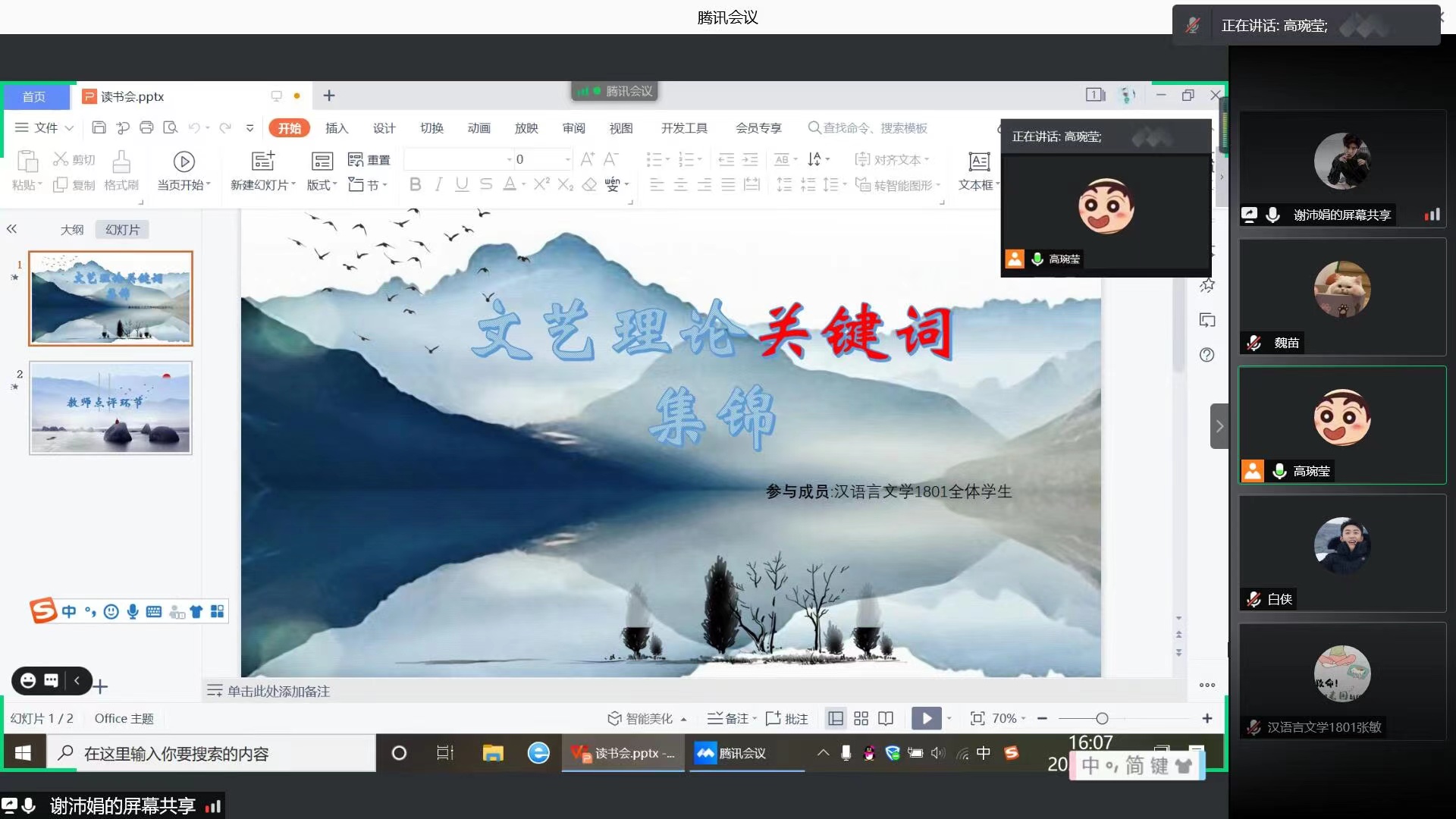“立身以力学为先,力学以读书为本。”为了丰富同学们的文化生活,营造良好的学习氛围,3月22日下午,beat365官方网站汉语言文学专业组织开展了一期线上读书交流会活动,指导老师杨洪敏及汉语言文学专业1801班全体学生参加活动。
