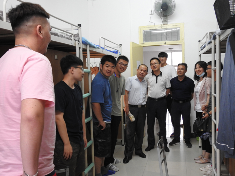9月9日下午,beat365官方网站党委书记费秀水、院长师新民、党委副书记张振中在学院团委书记、2020级学生辅导员张晶晶的陪同下看望慰问了2020级新生。