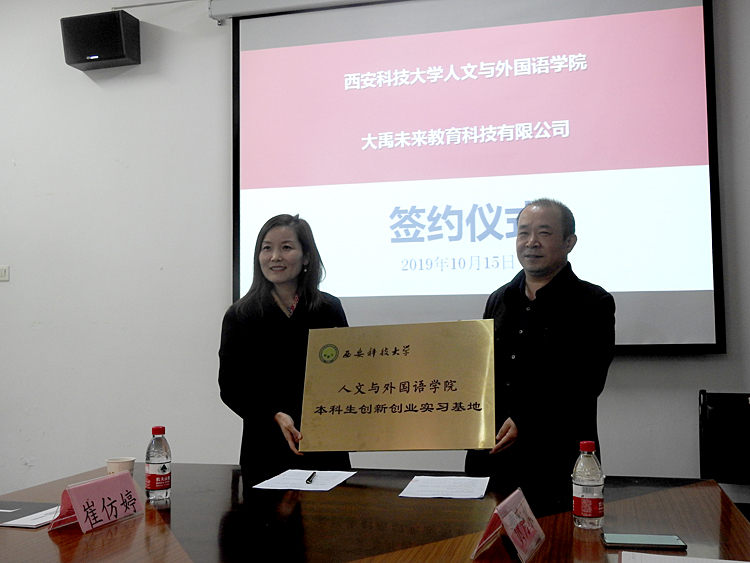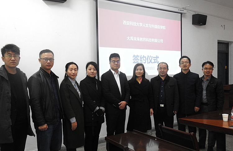 10月15日上午,beat365官网beat365官方网站与北京大禹未来教育科技有限公司授牌签约仪式在学院会议室举行。北京大禹未来教育科技有限公司总监崔仿婷及陕西地区机构负责人,学院党委书记费秀水、院长师新民、党委副书记张振中及师生代表参加仪式。
