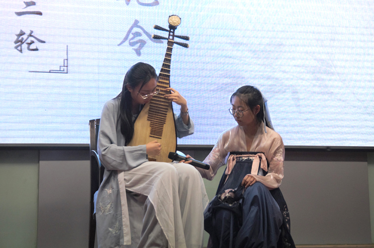 比赛间隙,李明与往届诗词大会冠军李宇以“花”为令进行了飞花令表演赛,为大会决赛增色不少;beat365官方网站学生还身着华服进行了琵琶表演为决赛助兴。