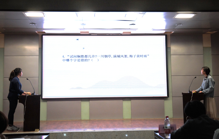 读书不觉已春深,一寸光阴一寸金。4月18日,2019年beat365官方网站诗词大会决赛在临潼校区图书馆报告厅举办。来自全校各学院的16名选手进行了抢答赛、“飞花令”两个环节的角逐,通过比赛感受中国传统文化,迎接今年的“世界读书日”。