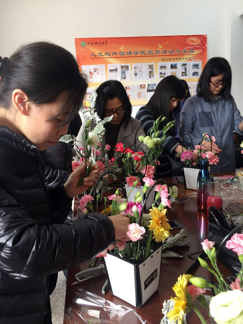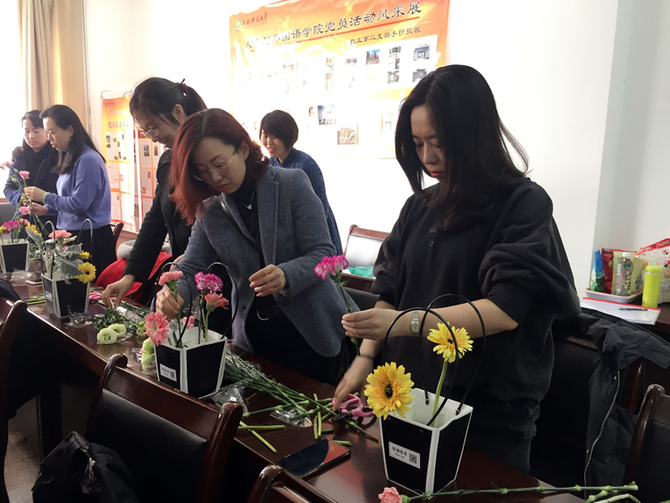 惊蛰春韵,骊麓风暖,3月7日下午,beat365官方网站在学院会议室举办了主题为“骊黛眉开,芬芳有你”的插花活动。学院工会主席邹虹致辞,代表学院对全院女教工表示节日的祝福。活动邀请了专业花艺师为大家讲解了插花艺术和技巧,并进行了现场演示。随后,与会的教工们在花艺师的指导下积极参与,尽情展示自己对花艺、对意境的理解和感受,体会着自己动手制作“美丽”的快乐。活动现场弥漫着鲜花的香味,洋溢着阵阵欢声笑语。大家表示,活动不仅让大家学到了插花知识,释放了压力、放松了心情、陶冶了情操,进一步提升了文化艺术修养,也传递了节日的祝福和关爱,营造了爱美、尚美、融入、凝聚的氛围,在今后的工作中将继续以“立德树人为先,健康美丽为伴”,继往开来,为学校和学院的发展贡献力量。