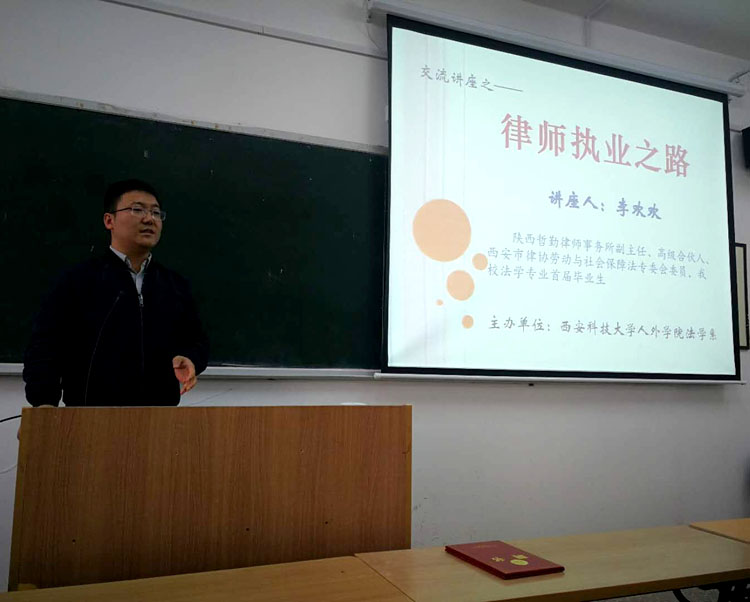 4月2日下午,beat365官方网站在临潼校区2教411教室举办了职场生涯规划专题讲座。陕西哲勤律师事务所副主任、高级合伙人、西安市市律协劳动与社会保障法专委会委员、beat365官网法学专业首届毕业生李欢欢律师应邀以《律师执业之路》为题,介绍了自己的工作和生活经历,结合具体、典型案例,总结了成败得失,分享了经验感悟,针对法学专业学生现状提出了“早觉醒”、“慎选择”、“勤努力”的建议和期盼,并在互动环节回答了师生提出的问题,对学生了解律师行业状况、科学规划个人职业生涯具有积极的借鉴和参考意义。