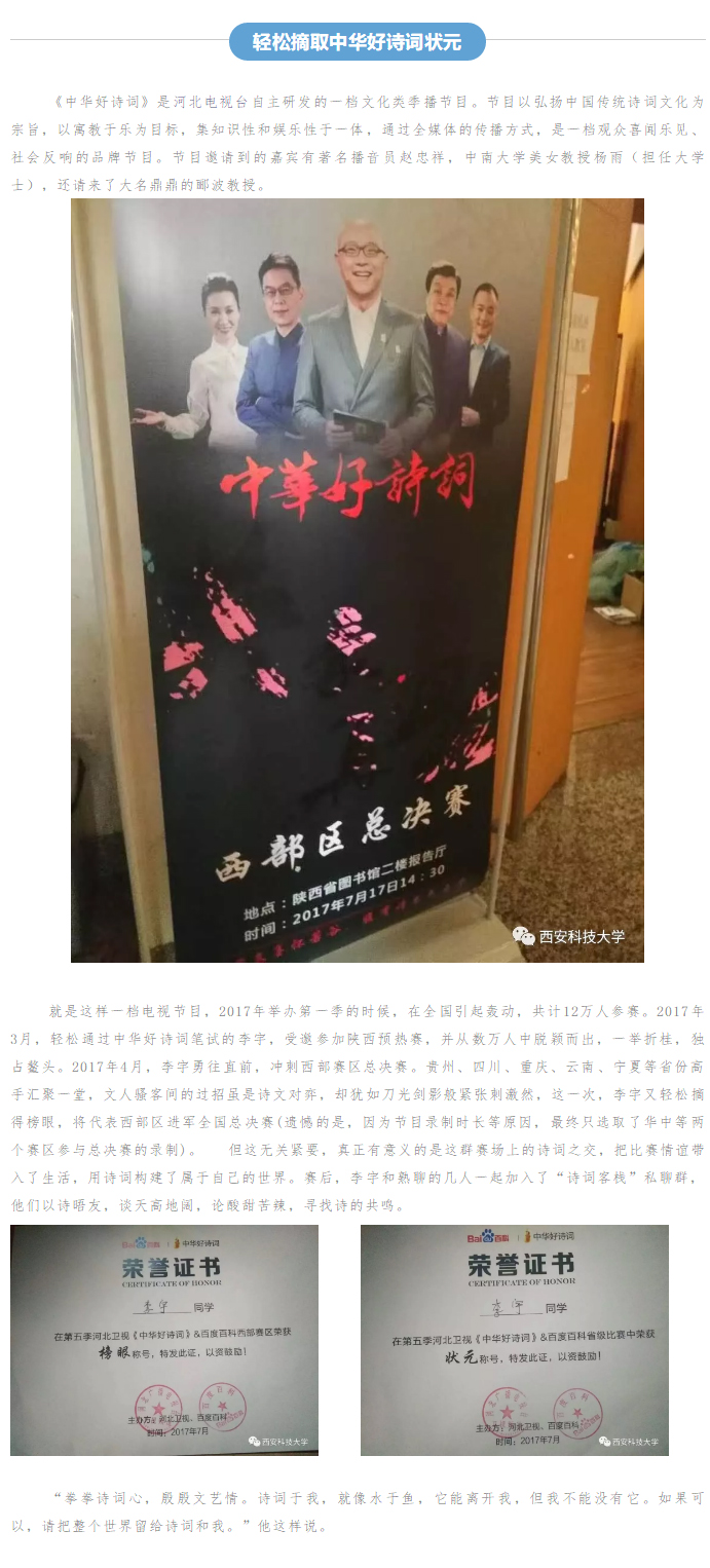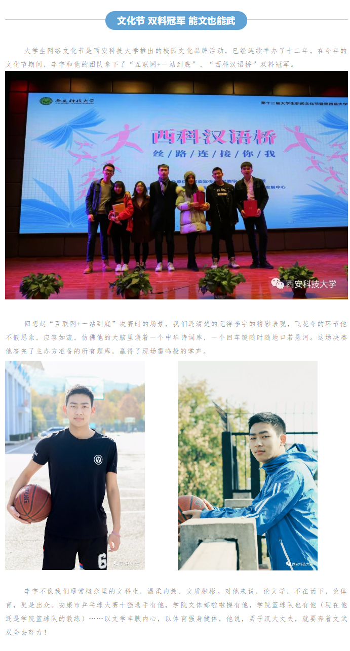 近日,beat365官方网站第十二届大学生新闻文化节暨第四届大学生网络文化节落幕,我院法学2016级李宇同学荣获本届文化节“互联网+一站到底”、“西科汉语桥”双料冠军。昨日(12月20日)beat365官网官方微信报道了李宇同学的故事。以下是详细报道。