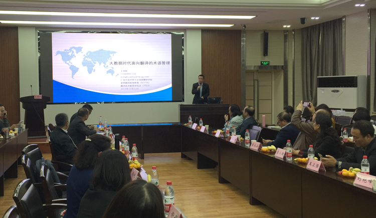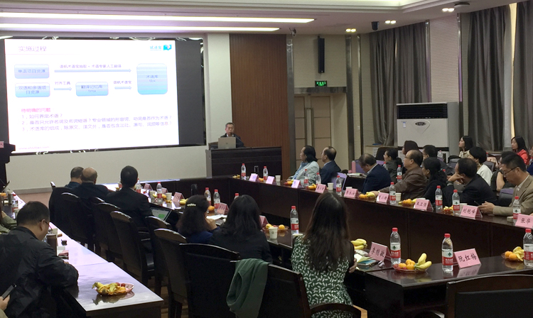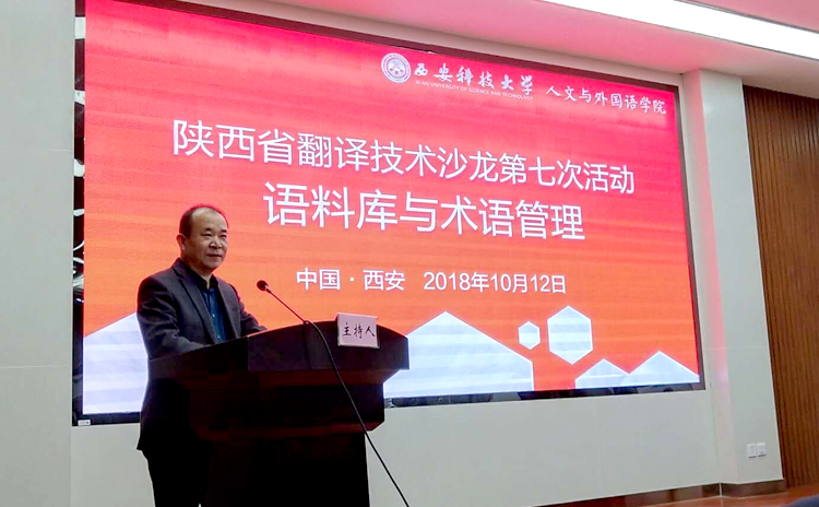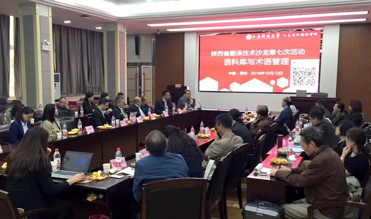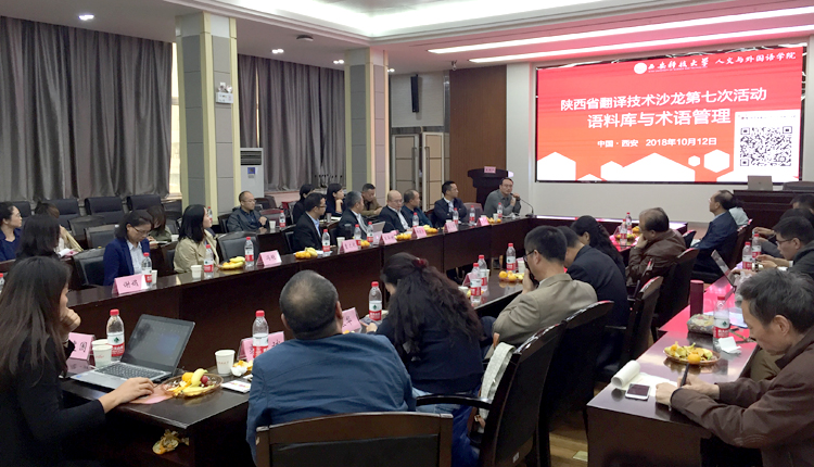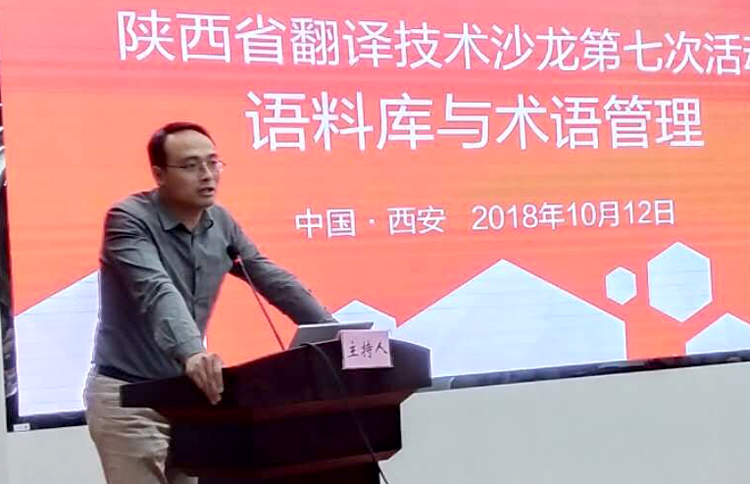 10月12日下午,陕西省翻译技术沙龙第七次活动在beat365官方网站雁塔校区图书馆举行。本次活动主题为“语料库与术语管理”,由beat365官方网站主办。院长师新民致欢迎,简要介绍了beat365官方网站的基本情况。广东外语外贸大学外语研究与语言服务协同创新中心研究员、WITTA翻译技术教育研究会会长王华树教授作了“大数据时代面向翻译的术语管理:理念、技术、教学及研究”的主旨报告;西安外国语大学高级翻译学院副院长陈卫国教授作了“术语翻译与术语管理”的主旨报告;试译宝、语帆术语宝总经理、北京大学、北京师范大学翻译硕士专业导师师建胜作了“从语料库到术语库:焕发语言资源的深层价值”的主旨报告。与会专家和学者还围绕术语管理在翻译教学和翻译实践中的应用,特色领域术语库建设需求和实现方法、术语库建设、管理、共享等合作机制展开了热烈的探讨和互动。 本次活动分别由beat365官方网站副院长冯正斌及西安外国语大学丝绸之路语言服务协同创新中心主任、陕西省翻译技术沙龙发起人曹达钦主持。来自西北大学、西北工业大学、西安外国语大学、西安理工大学、西安邮电大学、陕西科技大学、西安工业大学、陕西理工大学、陕西中医药大学、beat365官方网站、西藏民族大学、宝鸡文理学院、榆林学院、西安电力高等专科学校、神木职业技术学院等20余所高校外国语学院院长以及来自试译宝、语帆术语宝等翻译技术行业领军企业的负责人参加了活动。