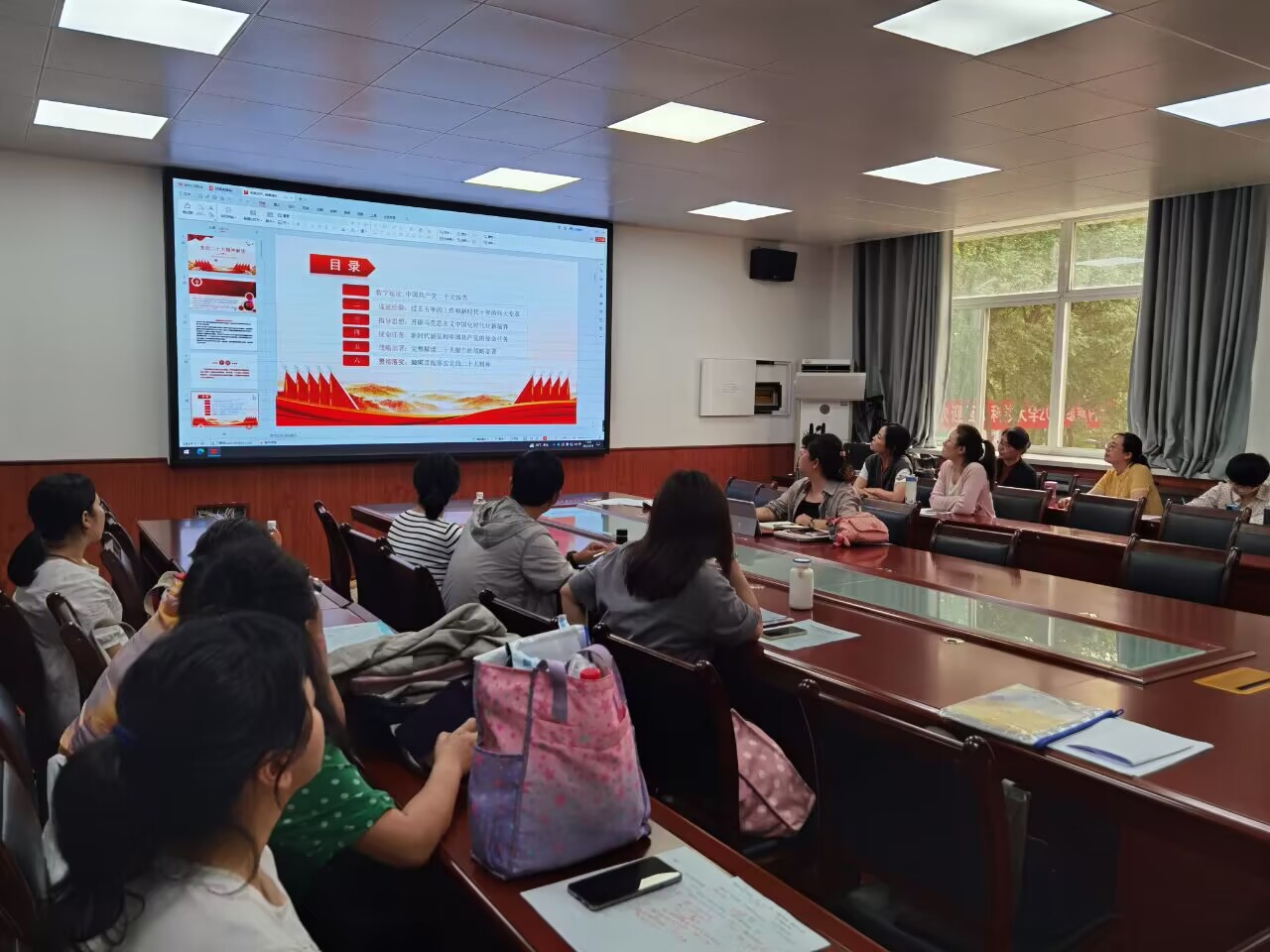 专题组织生活会后,张辉副院长为大英二部全体党员教师讲授了《数字速读中国共产党二十大报告》主题党课,用“9个数字”帮助教师党员们精准、清晰地把握党的二十大报告的精髓要义。