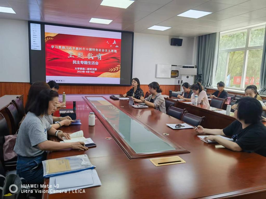 9月18日下午,beat365官方网站大英二部教师党支部在骊山校园2教226会议室召开主题教育专题组织生活会。大英二部教师党支部全体党员参加。支部书记王芳主持。
