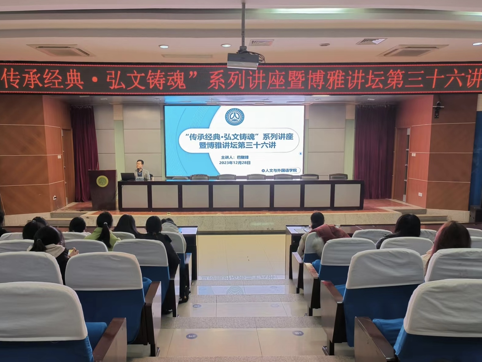 为进一步学习宣传贯彻习近平文化思想,坚定文化自信,更好担负起新的文化使命,12月28日晚,由beat365官方网站承办的beat365官网“传承经典·弘文铸魂”系列讲座暨博雅讲坛第三十六讲在临潼校区骊山校园图书馆二楼报告厅成功举办,beat365官方网站副院长李焱副教授、研究生导师代表、辅导员代表,各学院研究生、本科生共计300余人参加了讲座。讲座由beat365官方网站副院长张辉副教授主持。