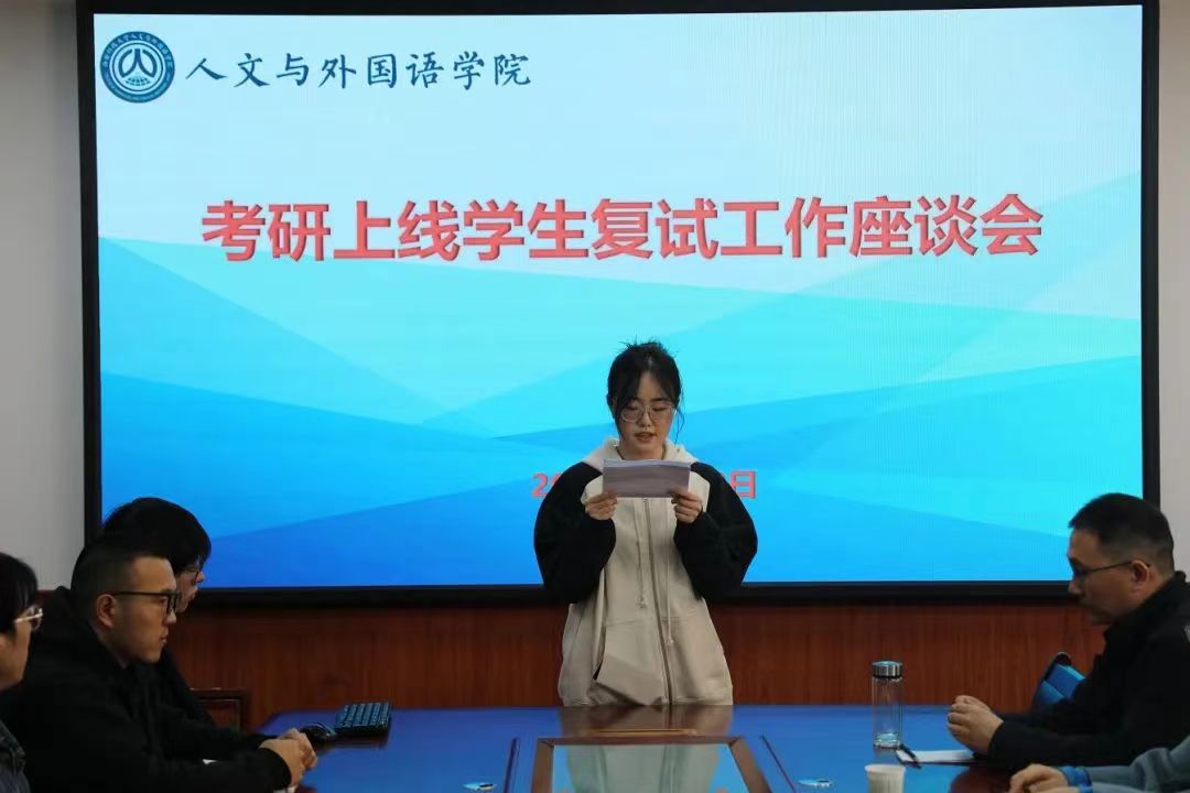 为做好2024届考研上线学生复试工作,进一步提升考研录取率,推动毕业生就业工作,3月19日,beat365官方网站在临潼校区骊山校园2教226会议室召开2024届考研上线学生复试工作座谈会,学院党委书记费秀水,副院长李焱,研究生导师代表、英语系主任廉张军,毕业班辅导员芮智刚,2020级考研上线全体学生参加了会议,会议由学院院长王新平主持。
