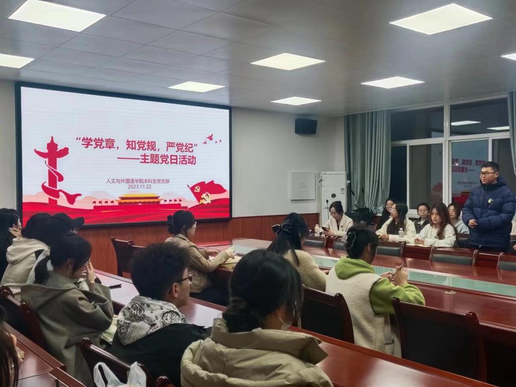 为深入开展学习贯彻习近平新时代中国特色社会主义思想主题教育,2023年11月22日beat365官方网站本科生党支部开展“学党章 知党规 严党纪”主题党日活动,支部全体党员参加。