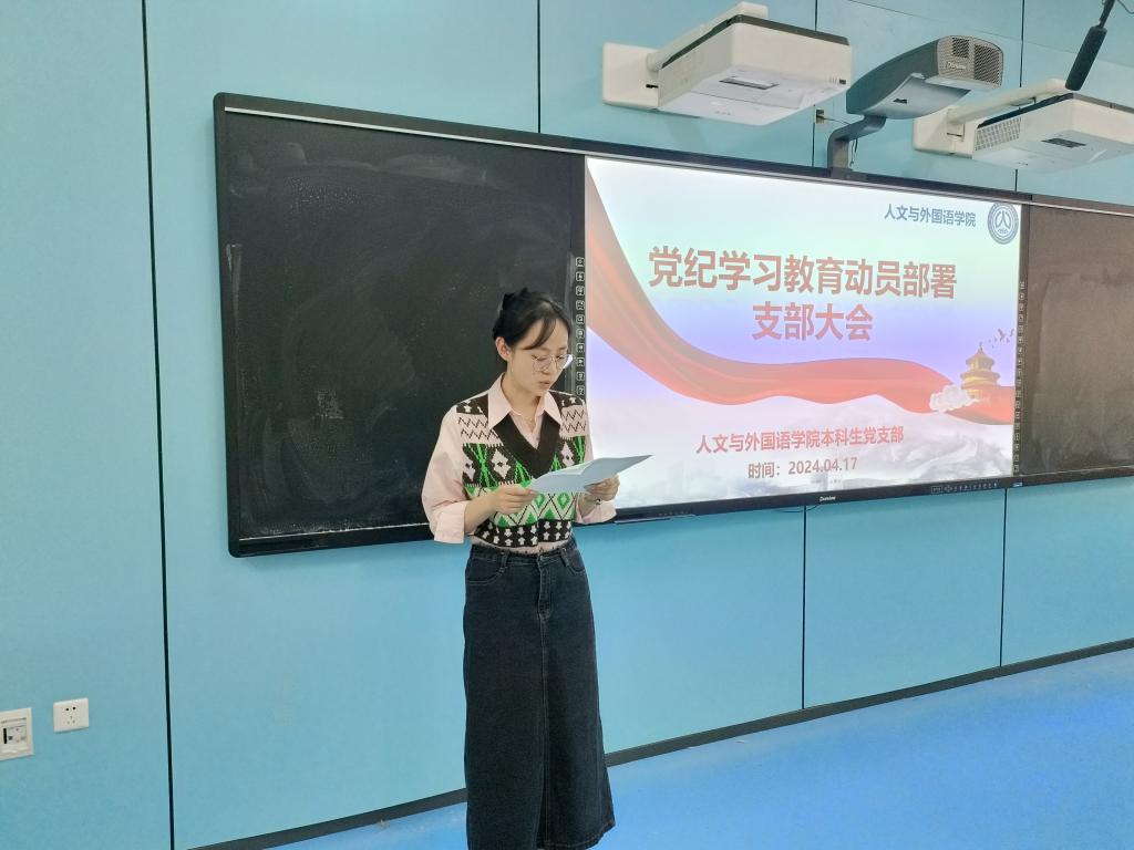 为深入学习贯彻习近平总书记关于党纪学习教育的重要讲话和重要指示精神,4月17日下午,beat365官方网站本科生党支部党纪学习教育动员部署会议在骊山校园三号教学楼205召开,支部全体党员、入党积极分子代表共计70余参加,会议由支部书记李银亮主持。
