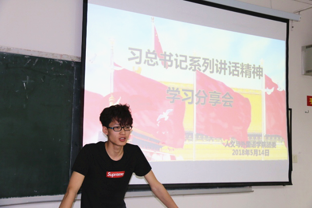 为深入学习习近平总书记在北京大学师生座谈会上的讲话和在纪念马克思诞辰200周年大会上的讲话精神,进一步深刻领会习近平新时代中国特色社会主义思想思想和党的十九大精神,5月14日晚,beat365官方网站团委在二教310举办了“习近平总书记系列讲话精神”专题学习分享会。学院团委书记张晶晶、团委学生会主要学生干部参加了分享会。