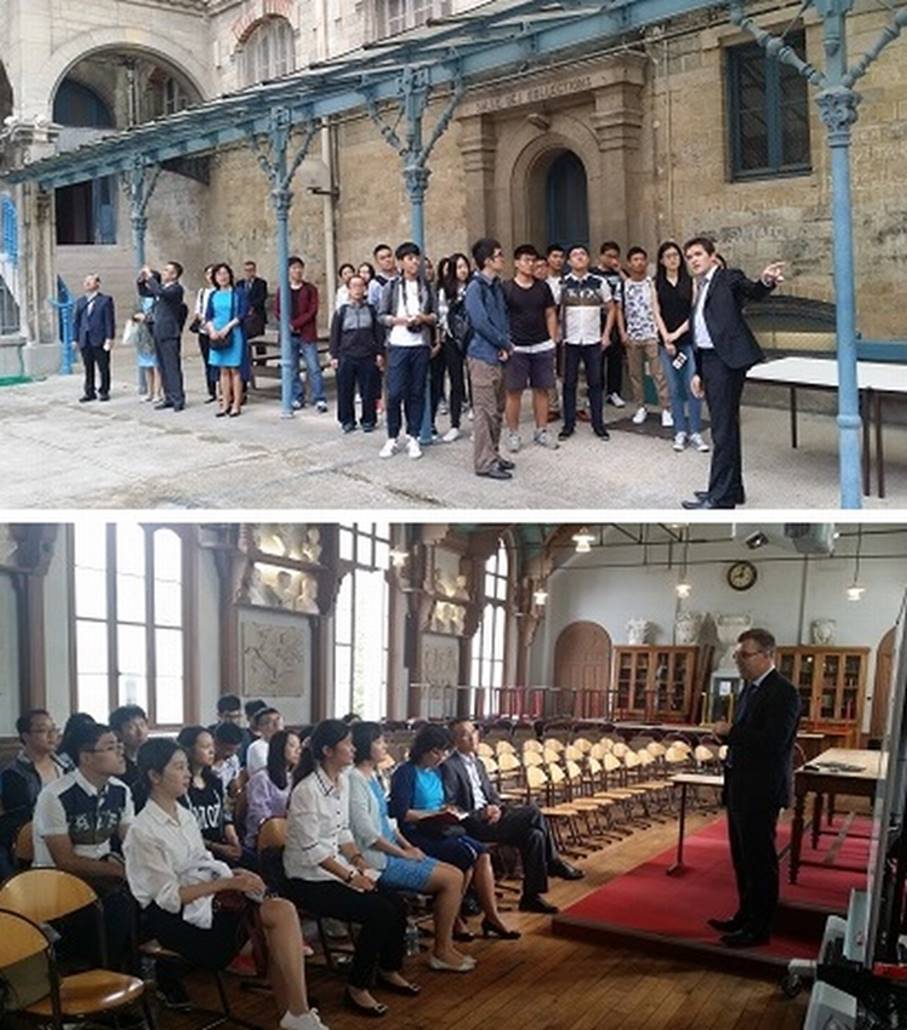 暑期学校的最后一站是里昂Lycée du Parc预科学校,Lycée du Parc与中法程师学院有较深入的合作关系,双方在学生互换、师资交流方面合作密切。学校校长Pascal Charpentier向来访师生介绍了学校的基本情况,负责外事的副校长Marie-Laurence Rude介绍了学校的教学内容和专业设置。然后,还通过参观物理、化学、工业科学实验室,与教师深入交流了实验教学的内容和模式,深刻了解法国预科中实验教学的特色。